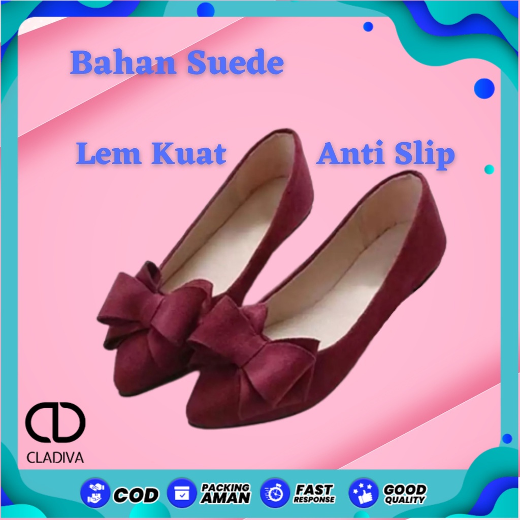 Sepatu Flat Shoes Wanita Pelangi Flatshoes Spatu Lancip Pita Ikat Perempuan Cewek Cewe FSH175 Cladiva